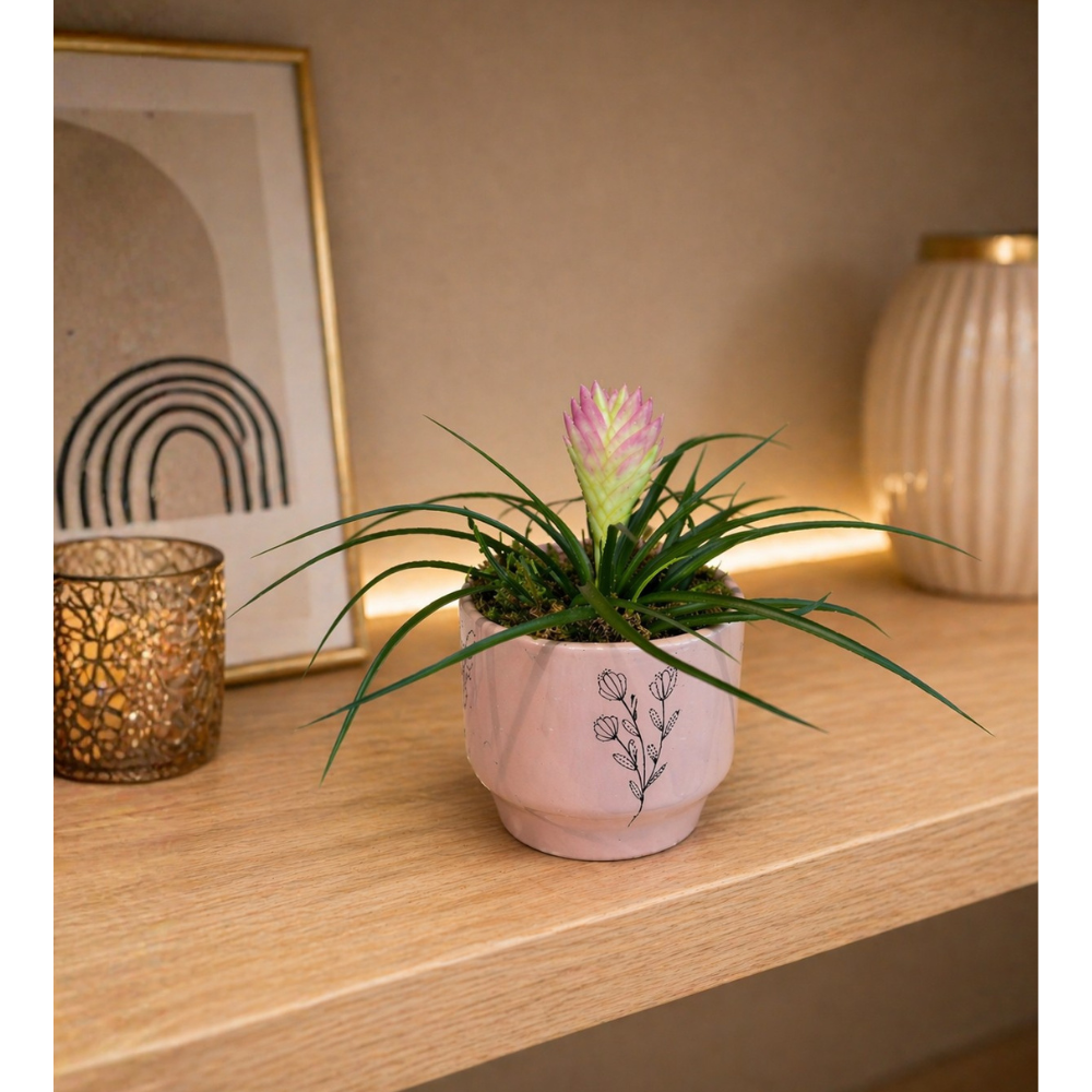- Vaso de cerâmica rosa com detalhes florais em relevo delicado